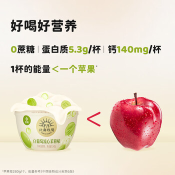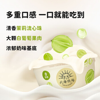 北海牧场宝石碗白葡萄流心茉莉140g*4杯0蔗糖3.8g/100g蛋白无蔗糖低温酸奶