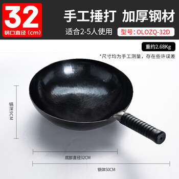 欧乐菲(OLOFE)章丘炒锅黑铁锅家用老式手打炒菜锅无涂层锅大炒勺精熟铁大师32cm