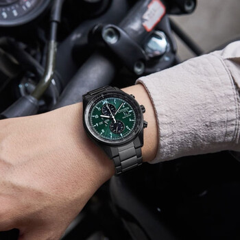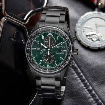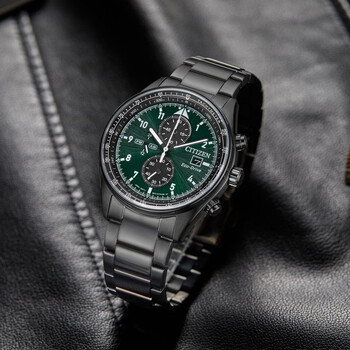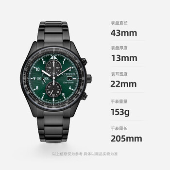 西铁城(CITIZEN)手表男日韩表FF系列光动能绿盘钢带商务送男友礼物CA0775-87X