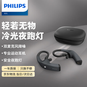 飞利浦(PHILIPS)骨传导蓝牙耳机TAA8606 运动真无线耳机冷光夜跑灯双麦克风降噪跑步骑行娱乐休闲音乐耳机耳挂式黑