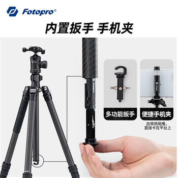 富图宝(Fotopro)MG6 双全景云台 3K碳纤维专业摄影摄像三脚架 灰色