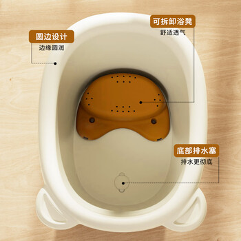 日康(rikang)泡澡桶 婴儿洗澡盆 儿童洗澡桶 浴缸浴桶赠浴凳 蓝色 X1001-1