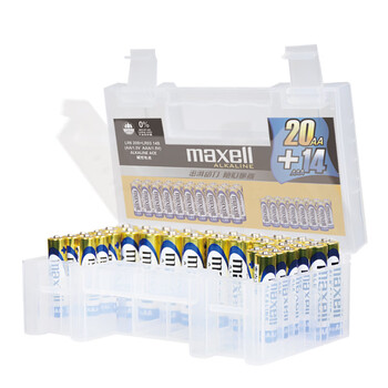 麦克赛尔(Maxell)5号电池20粒+7号电池14粒碱性电池34粒混合装送收纳盒适用鼠标智能门锁体重秤遥控器耳温枪玩具