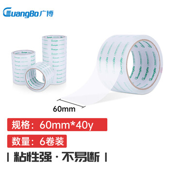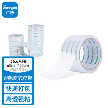 广博防风高透明封箱宽胶带 6卷装60mm*40y*50μm 36.6米/卷封箱胶带胶布办公文具FX-68
