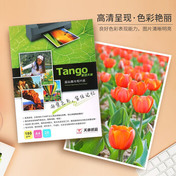 天章 (TANGO)新绿天章 晶钻系列 A4相纸180g 高光相片纸 照相纸 A4喷墨照片打印纸 20张/包