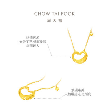 周大福礼物心形天鹅黄金套链项链爱心吊坠(工费280)45cm约5.05g EOF1602