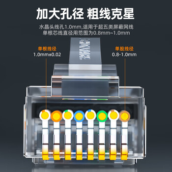 山泽 超五类网络屏蔽水晶头 超5类千兆网络连接头 RJ45电脑网线接头 Cat5e镀金水晶头 50个 SJ-P5050