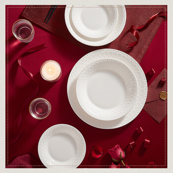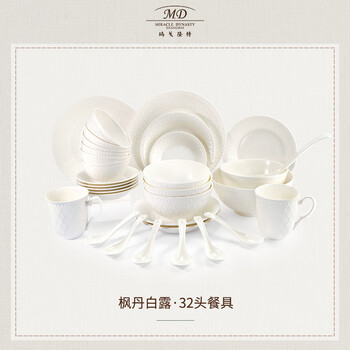 玛戈隆特 高档餐具套装骨瓷碗碟套装欧式纯白浮雕枫丹白露6人份32头