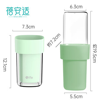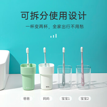 蓓安适刷牙杯洗漱杯旅行便携家用牙刷杯子漱口杯套装可拆2个 奶油绿