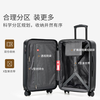 爱华仕行李箱20英寸登机箱男大容量拉杆箱出差旅行箱女密码箱皮箱燕尾黑