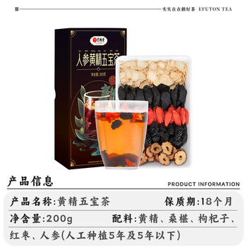 艺福堂精品黄精人参桑椹枸杞红枣五宝茶200g 男人滋补养生可搭杜仲玛咖