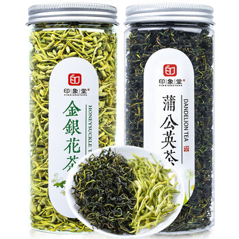 印象堂茶叶 花草茶金银花茶蒲公英茶组合2罐装共110g 礼品养生茶