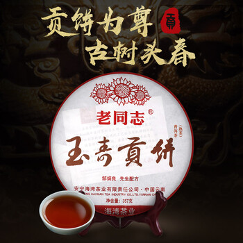 老同志 普洱茶 熟茶 饼茶玉寿贡饼普洱 茶叶云南七子饼 357g茶叶
