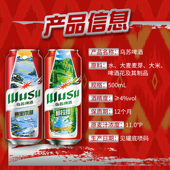红罐乌苏500mL*12罐(新旧包装随机发货)