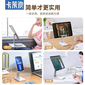 卡莱澳 【升级双杆】手机支架 直播桌面支架 懒人支架 网红ipad平板折叠可伸缩升降支架 白色