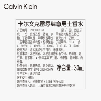 Calvin Klein ck香水肆意男士淡香水30ml生日节日礼物送男朋友老公