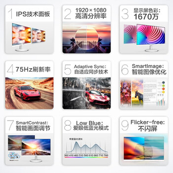 飞利浦 23.8英寸 IPS屏 全高清 75Hz 低蓝光无频闪 壁挂 网课 办公显示器 电脑显示屏 241V8W