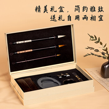 得力(deli)文房四宝高档礼盒毛笔镇尺石砚墨锭全套风水摆件书法套装 妙笔成书节生日礼物送领导客户长辈