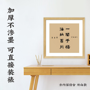 一海堂 文化宣纸 生宣卡纸 国画工笔画书法纸镜片装框用硬卡圆形镜片纸 方形内深仿古外白-生宣 33*33cm*10张