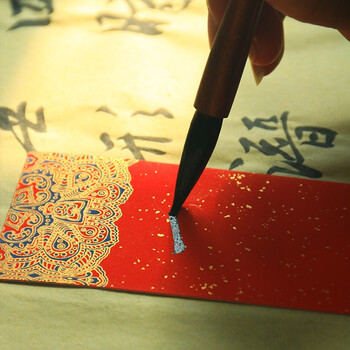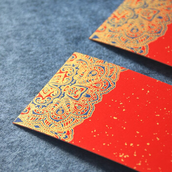 一海堂 文化 宣纸书签 国风创意空白书签套装纸质特色礼物送老外老师同学生日礼物 宫廷款大红洒金书签7*21cm