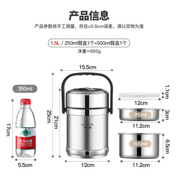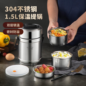 美厨(maxcook)304不锈钢保温饭盒提锅1.5L 双层保温桶学生便当盒 MCTG2020