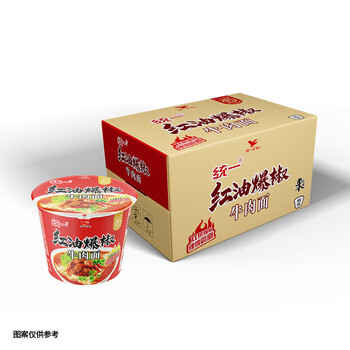 统一方便面 来一桶红油爆椒牛肉面105g*12桶 整箱装 桶面 无辣不欢味蕾大开