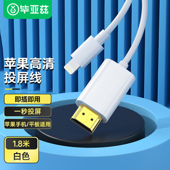 毕亚兹 苹果投屏线器 Lightning转HDMI同屏转换器手机平板连接电视投影仪显示器投屏转换线1.8米白色 P40