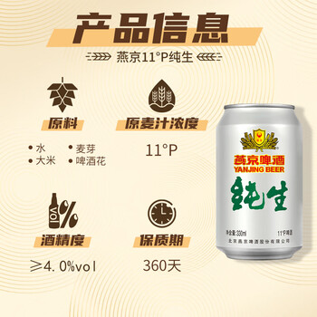 燕京啤酒 纯生11°P啤酒330ml*24听 整箱装 春日热卖踏春送礼