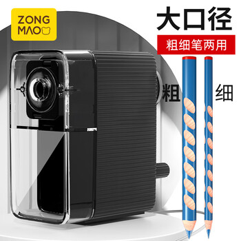 宗茂儿童削笔器手摇卷笔刀 升级大口径加粗卷笔器 粗细可调耐用铅笔转笔刀 小学生学习考试文具用品027黑色