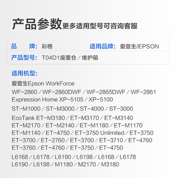 彩格T04D1维护箱适用爱普生Epson WorkForce L6178废墨仓 L6168维护箱L6198 L6160废墨装置 L4158废墨盒