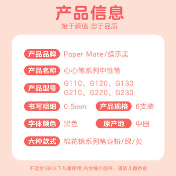 【开学必备】缤乐美(Paper Mate)中性笔0.5mm速干高颜值按动式签字笔水果+棉花糖学生书写黑色6支装
