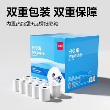 得力(deli)57*50型14.5米*100卷 白令海热敏收银纸 京东美团外卖打印小票纸11751【适配58mm机器 5801P等】