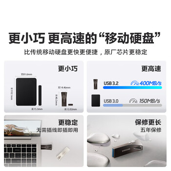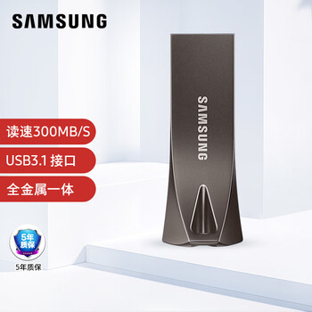 三星(SAMSUNG)64GB USB3.1 U盘 学习办公两用 金属高速优盘 小巧精致车载U盘深空灰 读速300MB/s 高速便携