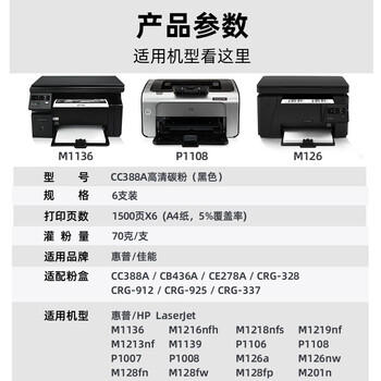 V4INK CC388A碳粉88A墨粉6支(适用惠普HP打印机硒鼓388a碳粉m1136墨盒)