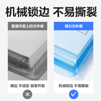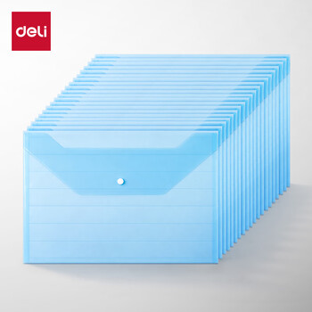得力(deli)20只A4条纹透明文件袋 按扣资料袋 塑料防水档案试卷文件收纳 发票收纳 办公学习用品 27028