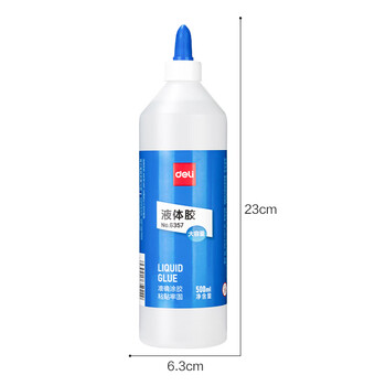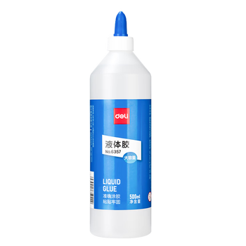 得力(deli)500ml大容量高透明胶水 可水洗高粘液体胶 准确点胶不堵头学生文具 开学必备学习用品 单瓶 6357