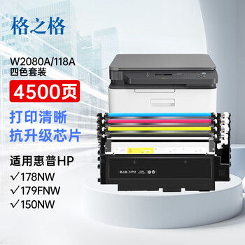 格之格118a硒鼓适用惠普178nw硒鼓 179fnw 150nw 150a w2080a墨盒 hp178nw打印机粉盒 高清抗升级 4500页 四色套装