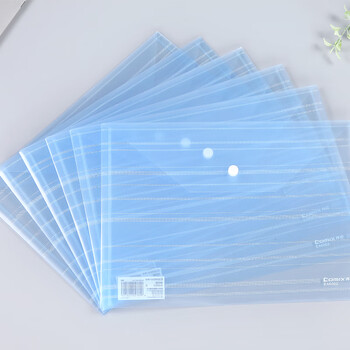 齐心(COMIX)20个装 A4透明横纹按扣文件袋 发票管理公文袋 资料袋 档案袋 蓝色 EA6002