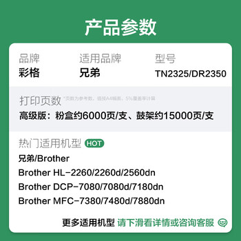 彩格适用兄弟MFC7380套装 HL-2260D硒鼓 7480 7880DN DCP7080D硒鼓粉盒7180 TN-2325 TN2312 2560DN打印机墨盒