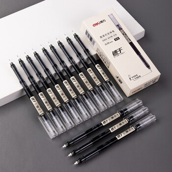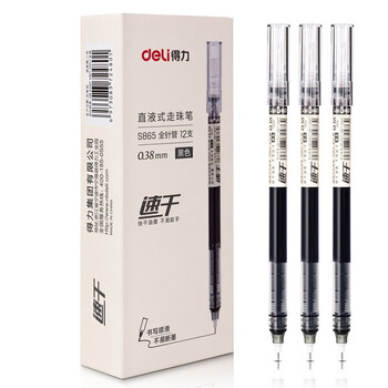 得力(deli)(deli)速干直液笔签字笔 0.38mm全针管无印风中性笔水笔走珠笔会议笔 黑色12支/盒S865