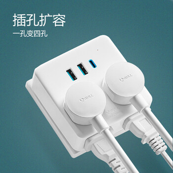 公牛(BULL)20W PD苹果快充插座扩展器一转多/一转四转换插头/转换器/插排 86型 4位总控开关+USB GN-9322KQ