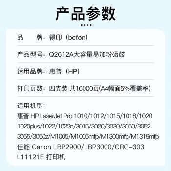 得印q2612a 12a硒鼓超大容量易加粉4支装 适用惠普1020硒鼓hp m1005 1020plus 1010 1018佳能2900打印机墨盒