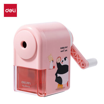 得力(deli)自动进笔削笔机 学生手摇卷笔刀/转笔刀/卡通铅笔刀削笔刀 学生文具开学考试生日礼物女孩粉色