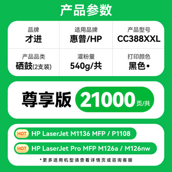 才进388a硒鼓适用惠普m1136硒鼓M126a/nw/snw plus打印机墨盒p1108 P1106 M128fn/fp/fw p1007 p1008 m1213nf碳粉