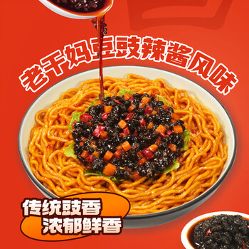 统一酱拌面老干妈豆豉辣酱风味碗面115克*12碗 整箱装速食干拌面