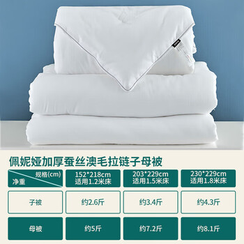 多喜爱100%蚕丝51%澳洲羊毛拉链子母被芯 四季冬被子约12.4斤229*230cm