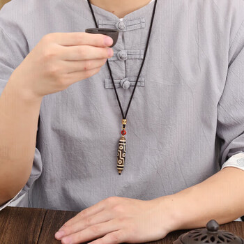 妍韵珠宝精品九眼老天珠吊坠玉髓挂坠南红平安扣六字箴言护身男女士款项链