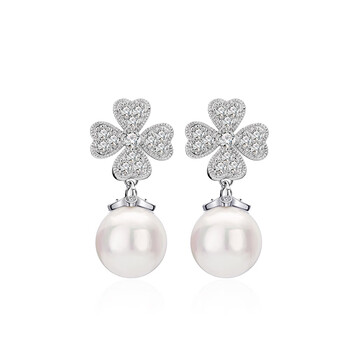Qlady四叶草仿珍珠耳环女气质高级感银针耳坠轻奢耳钉耳饰生日新年礼物