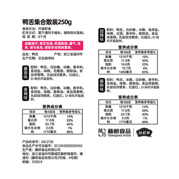 藤桥精品鸭舌集合250g温州特产卤味熟食鸭肉休闲零食鸭货熟食