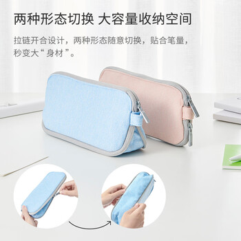 KACO爱收大容量文具袋 学生笔袋网兜隔层收纳袋 铅笔盒海盐蓝K1223